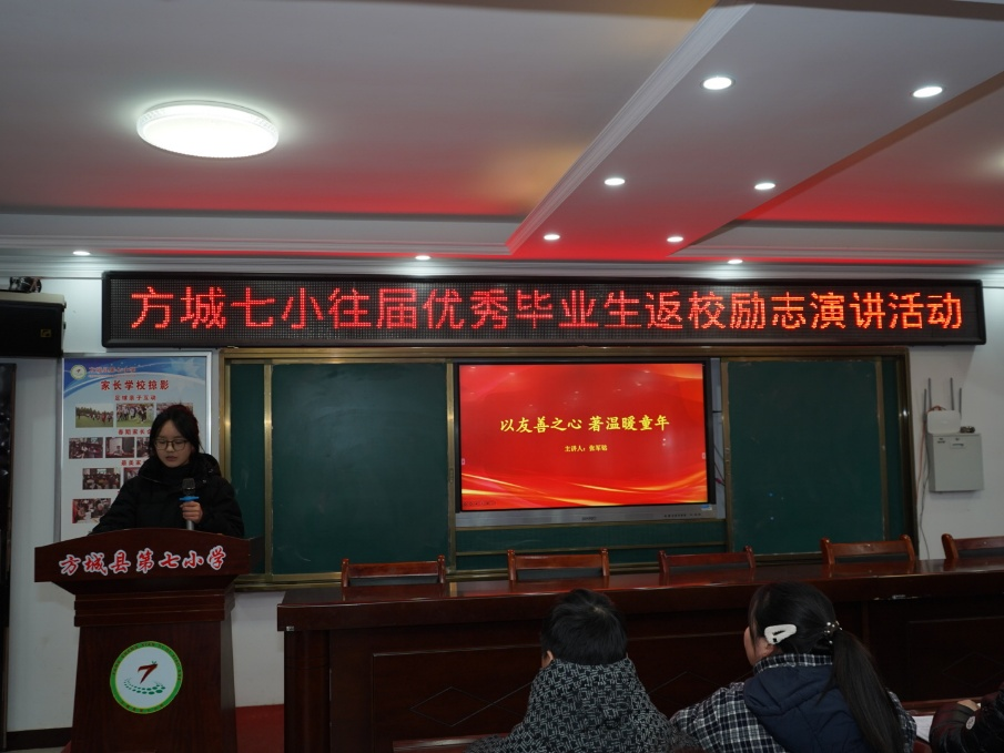 近日,方城七小校园内暖意氤氲,情谊绵长。一场以“强国有我 逐梦前行”为主题的往届优秀毕业生返校励志活动圆满落幕。活动创新采用“现场分享+云端连线”双轨模式,搭建起学长学姐与在校学子间跨越时光的交流桥梁,以真实可感的榜样力量,为孩子们的成长之路点亮指路明灯。