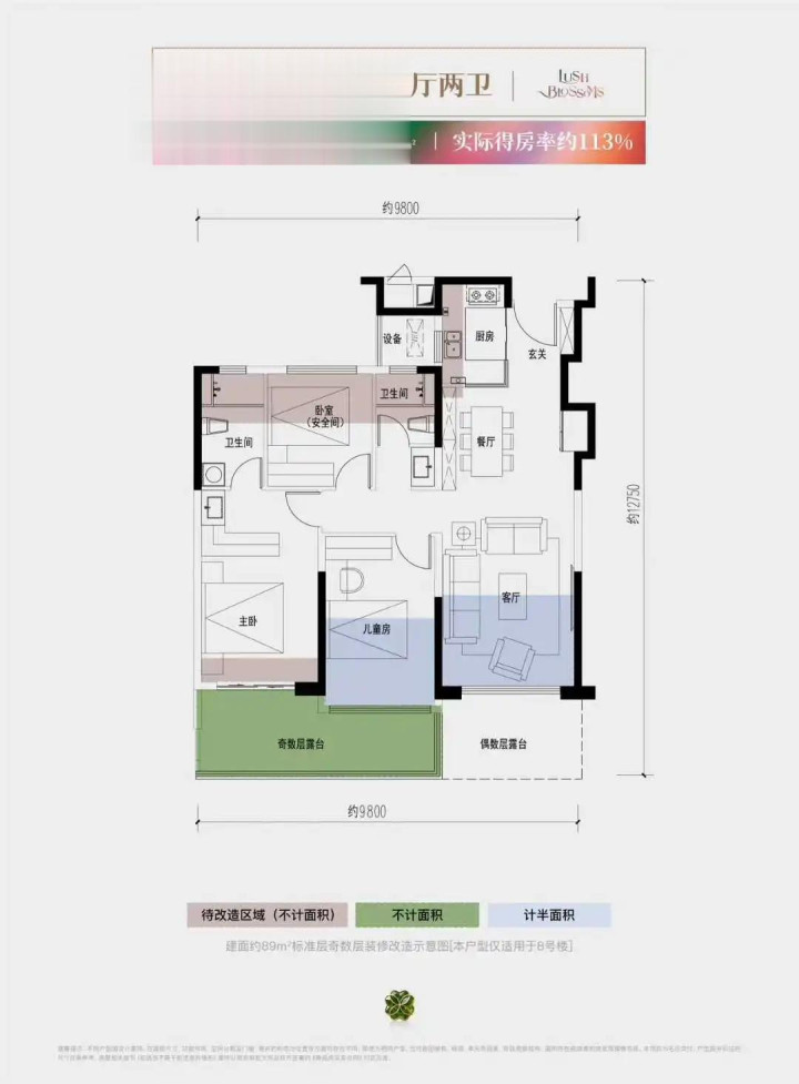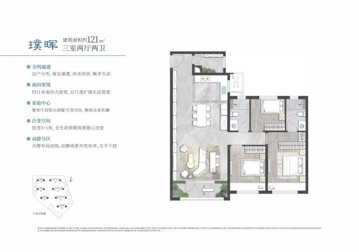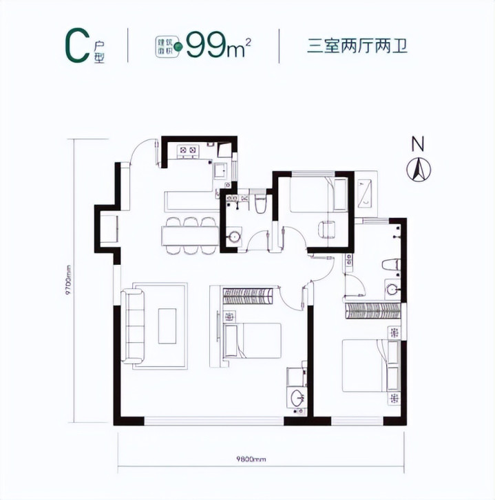 约99㎡三室为首次置业者的性价比之选,约112㎡做四室,南向面宽近10米,还有13㎡超大赠送,约130㎡宽幕横厅,满足二孩家庭或品质改善。