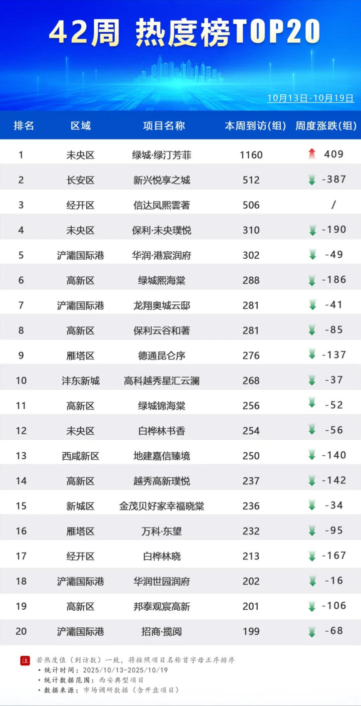 42周丨西安楼市热度榜TOP20