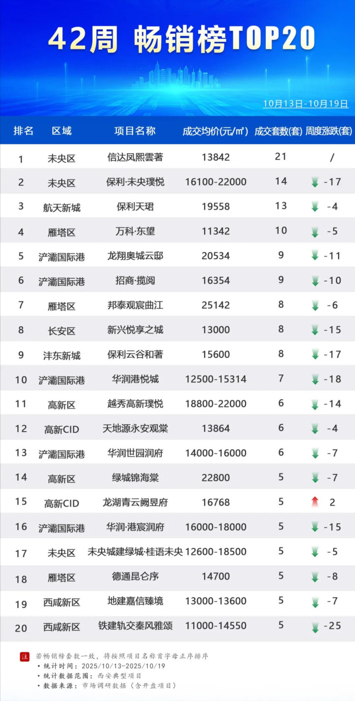 42周丨西安楼市畅销榜TOP20