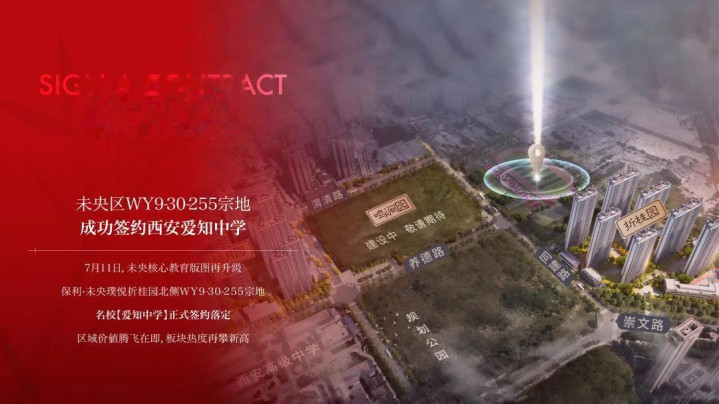 从位置上看,签约落地的爱知中学(九年制学校,小学+初中)位于保利未央璞悦折桂园北侧,此外还有位于项目皓月园南侧的西安高级中学;交通方面有地铁4号线市中医医院站,商业有大融城、熙地港。