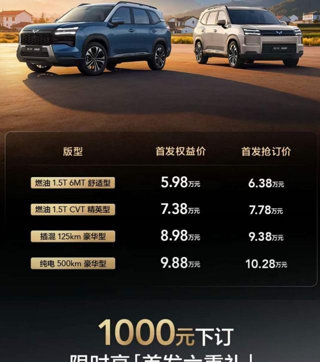 各位老铁,最近是不是感觉车市越来越看不懂了?曾经咱们印象里那个专造“回本神器”和“代步神器”的五菱,现在掏出来的家伙是越来越“超纲”了。以前是宏光MINIEV让你轻松拥有,现在它说要让你轻松拥有一台“全能SUV”——五菱星光560。更狠的是,这台看起来挺硬朗的家用SUV,首发权益价直接干到了5.98万起,还一口气给你燃油、插混、纯电三种动力任选。这哪是“星光”啊,这分明是五菱在8-10万级市场投下的一颗“照明弹”。今天,咱不聊虚的,就看看这束光,到底能照多远。